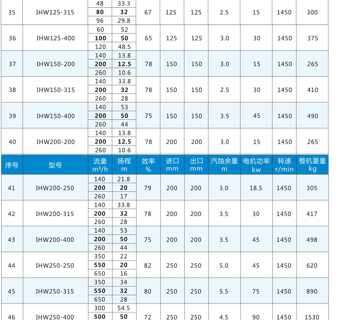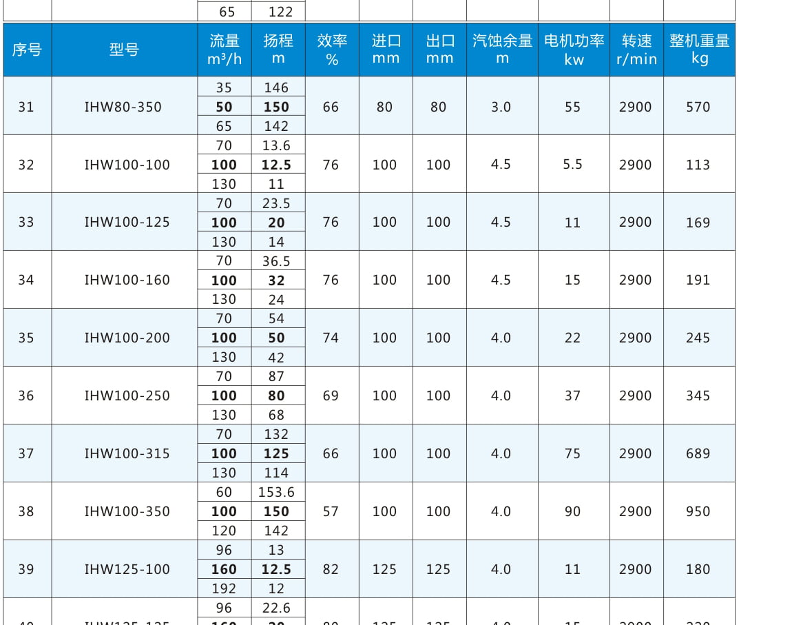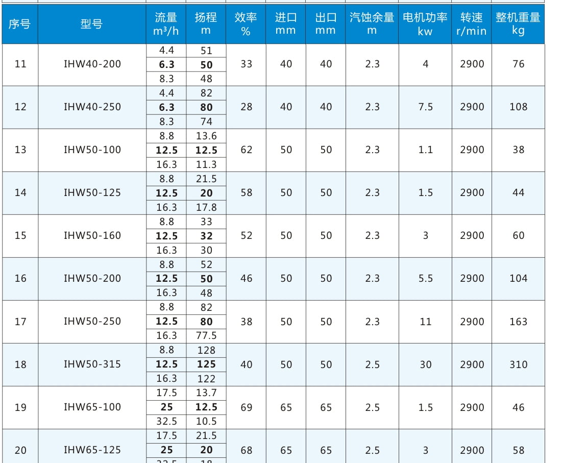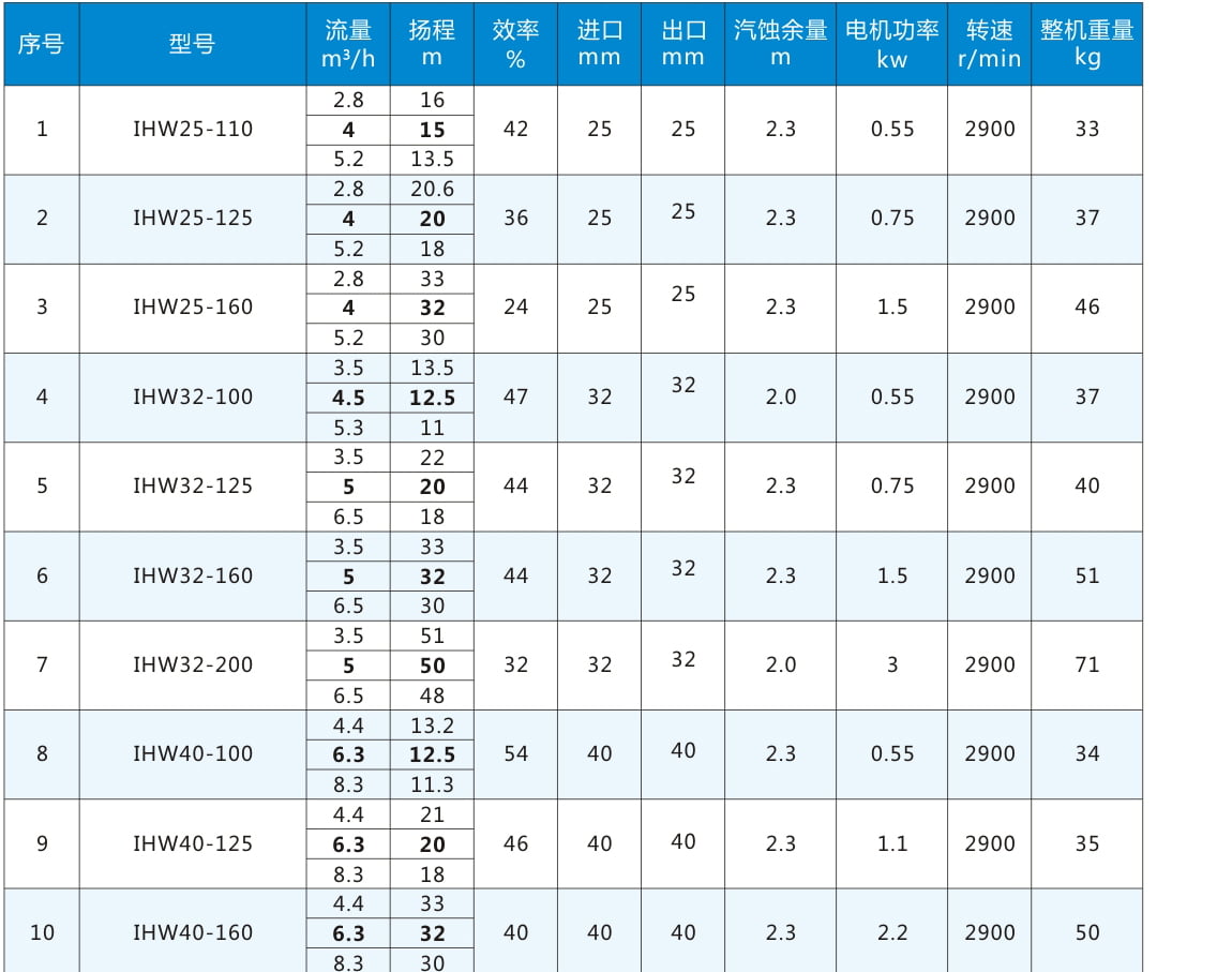 性能參數(shù)表:電機(jī)轉(zhuǎn)速2900r/min,表中流量揚(yáng)程加粗為額定參數(shù)