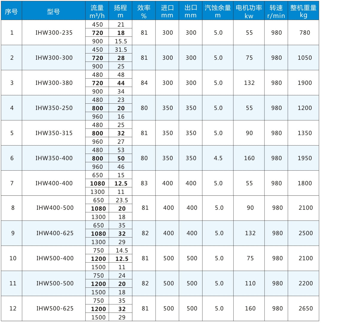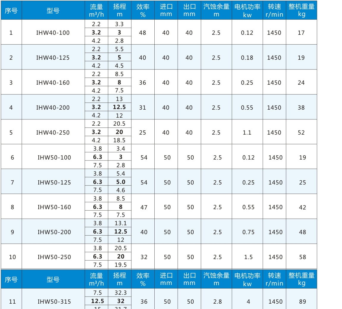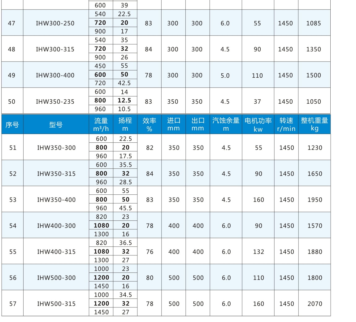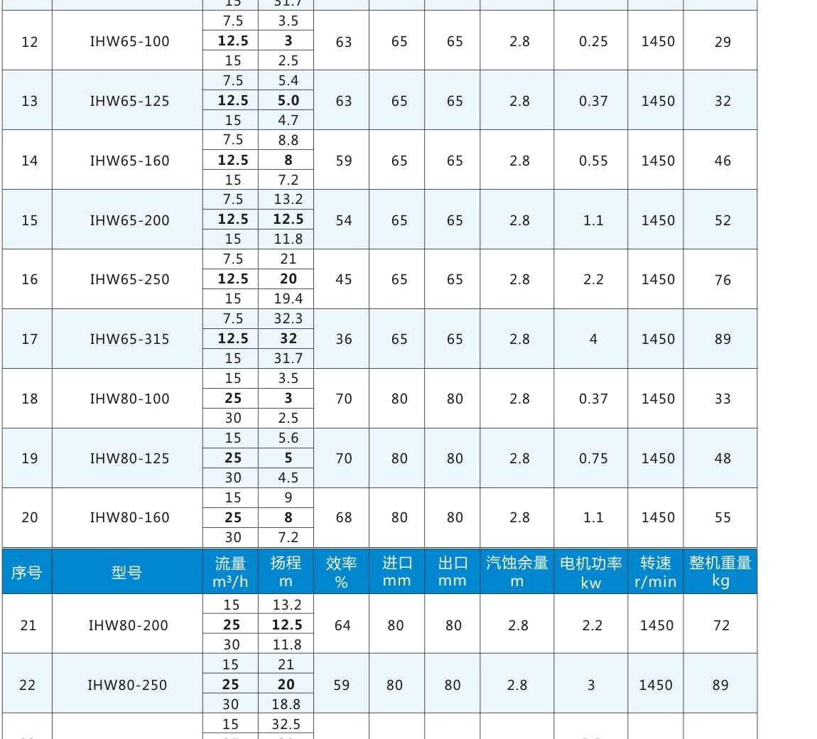 性能參數(shù)表:電機(jī)轉(zhuǎn)速2900r/min,表中流量揚(yáng)程加粗為額定參數(shù)