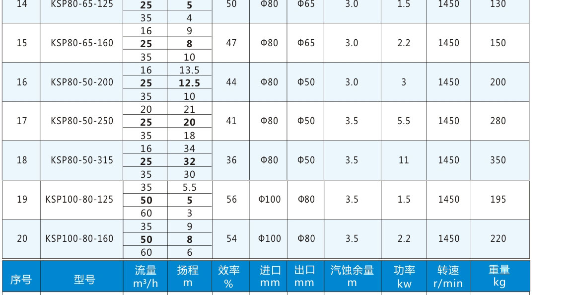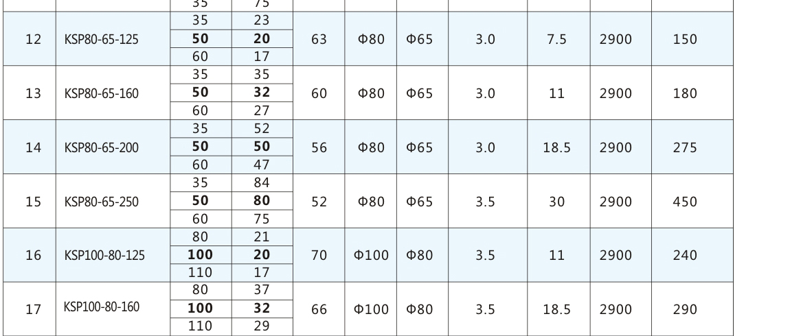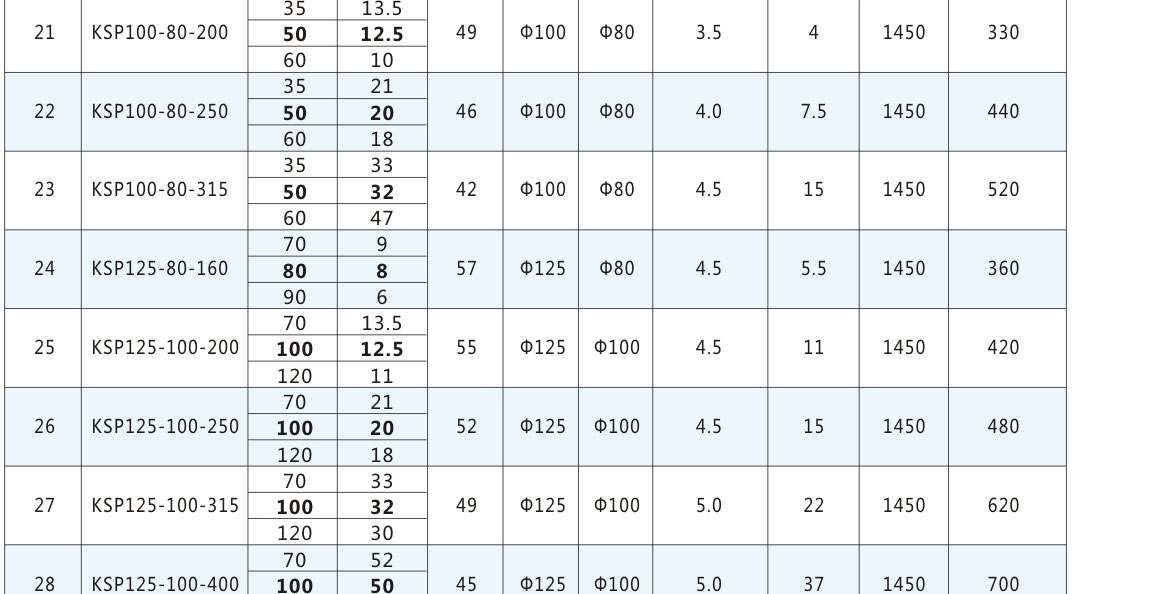 KSP:耐腐耐磨夾板泵代號丨80:進口直徑80mm丨65:出口直徑65mm丨160:葉輪直徑125mm